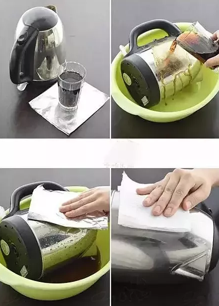 倒點可樂,然后用錫紙反復擦,直到把可樂擦干凈為止,再用廚房紙巾輕輕的擦一遍壺身就OK了。