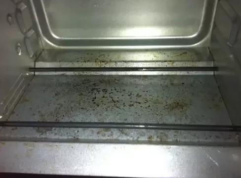 “洗滌靈+水”以1:10的比例混合,噴在烤箱內油污處,鋪廚房紙巾,再噴一遍洗滌靈水。然后將一大碗開水放在烤箱內,關上門兒,不通電,燜10分鐘。用蘸有洗滌靈水的紙巾先擦一遍烤箱,再用抹布干凈就OK了。
